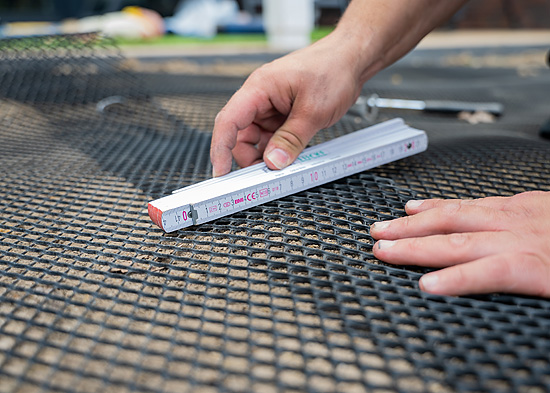 Für die Oberflächenbarriere, direkt 5 - 8cm unter dem Rollrasen, wird das Gitter auf Ihrem Grundstück horizontal mit Überlappungen verlegt und rundherum rund 20 Zentimeter vertikal in das Erdreich eingeklappt. Dadurch verhindern Sie, dass das Gitter in den Randbereichen von Maulwürfen durchdrungen werden kann – Ihr Rasen bleibt schön und Ihr Garten gedeiht im natürlichen Gleichgewicht.